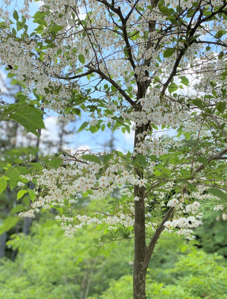 エゴノキは、初夏に可愛らしい星のような釣鐘型の花をたくさん咲かせます。