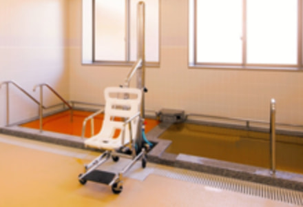 自家泉源の豊富に湧き出る温泉に、スタッフの介助で安全・快適に入浴をお楽しみいただけます。水圧で作動する静かで快適なユニバーサルリフトの使用で歩行が困難なご利用者様も温泉入浴が可能です。皆様にゆっくり入浴していただけるよう午後浴も実施しております。